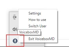 • Right-click on the VoiceboxMD Microphone icon in the system tray.