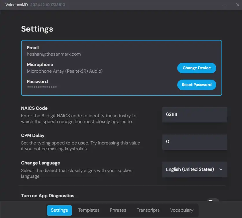 • Log in to VoiceboxMD on your Windows.