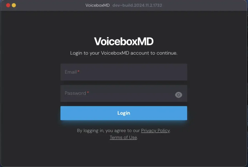 Enter the login credentials you received via email when you signed up for VoiceboxMD and click Login.
