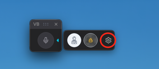 Click the small arrow (▶) on the right side of the VoiceboxMD widget. This expands a secondary panel showing three icons: the AI Scribe modes or a lock icon, and a gear (⚙) icon.