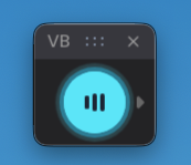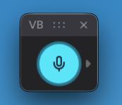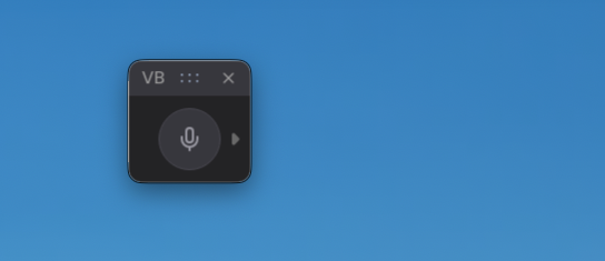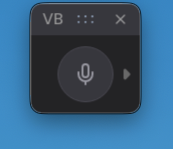 The VoiceboxMD desktop app is a compact, always-on-top widget that stays out of your way while you work inside any EHR or text field. It has three visible elements: the VB label, a central microphone button, and a sidebar arrow that reveals additional controls.