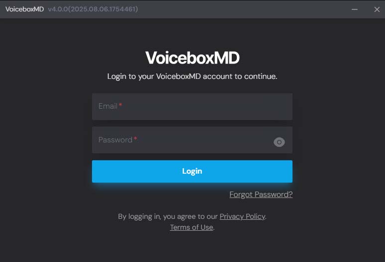 Enter the login credentials sent to you via email when you signed up with VoiceboxMD, and then click Login.